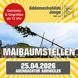 Wir organisieren mit dem Aufstellen des Maibaumes sowie der Mailehen-Versteigerung das Mai-Brauchtum und gestalten das wohl einzigartige Martins-Brauchtum in Ahrweiler mit den Martinsfeuern und den beeindruckenden Schaubildern entscheidend mit. Außerdem sind wir ein Teil der St. Laurentius Junggesellen-Schützengesellschaft von Ahrweiler.